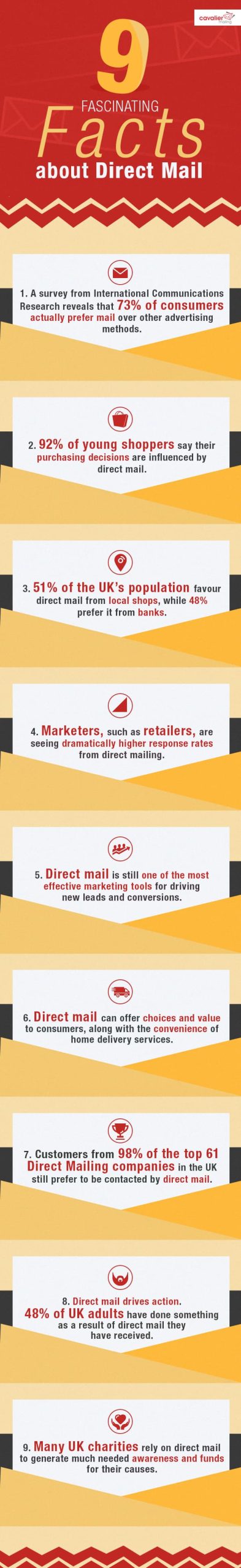 1. A survey from International Communications Research reveals that 73% of consumers actually prefer mail over other advertising methods.